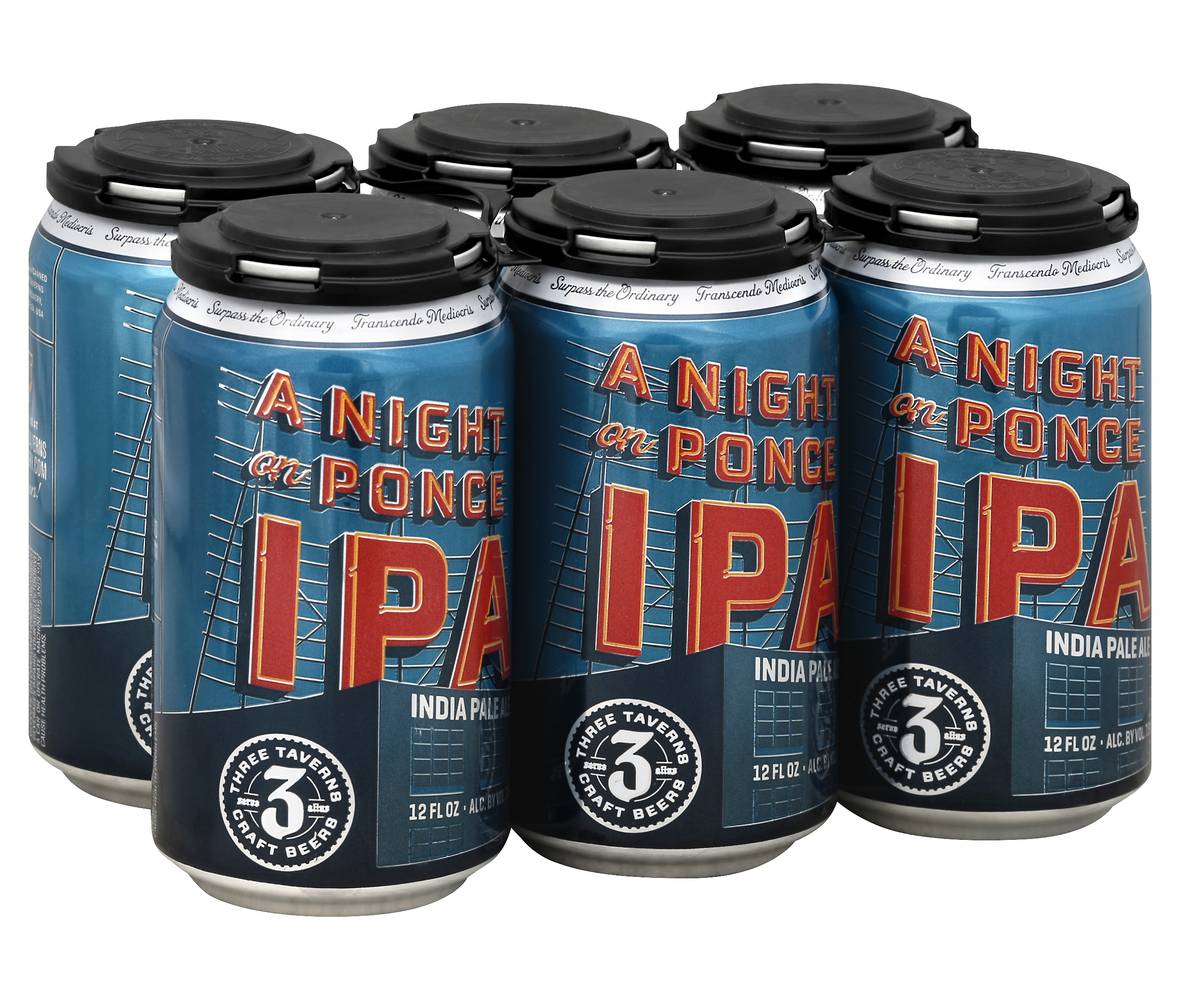 Three Taverns Night on Ponce Ipa Beer (6 x 12 fl oz)