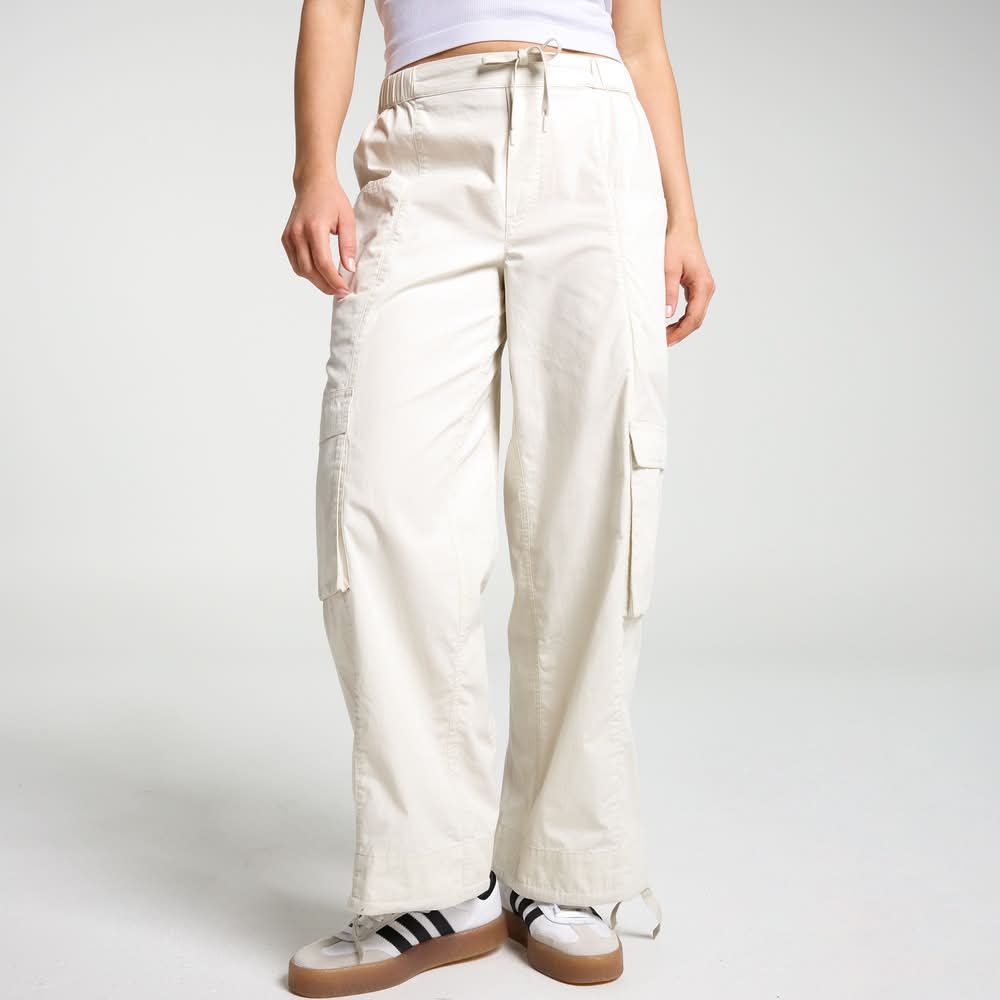 These are designed for movement. The elastic waistband and adjustable drawcord ensures a perfect, customizable fit, while the wide leg silhouette creates a flattering, flowy look that moves with you. Cargo pockets with flap closures provide a safe spot for your essentials, whether you're heading to class or rehearsing your next routine. Fit & Design: Relaxed fit women’s pantsElastic waistband with adjustable drawcord to create a just-right fitWide leg silhouette with drawcord at hemCargo pockets with flap closure are a safe home for must-haves . Casual • Color: Cloudy tofu • Size: L