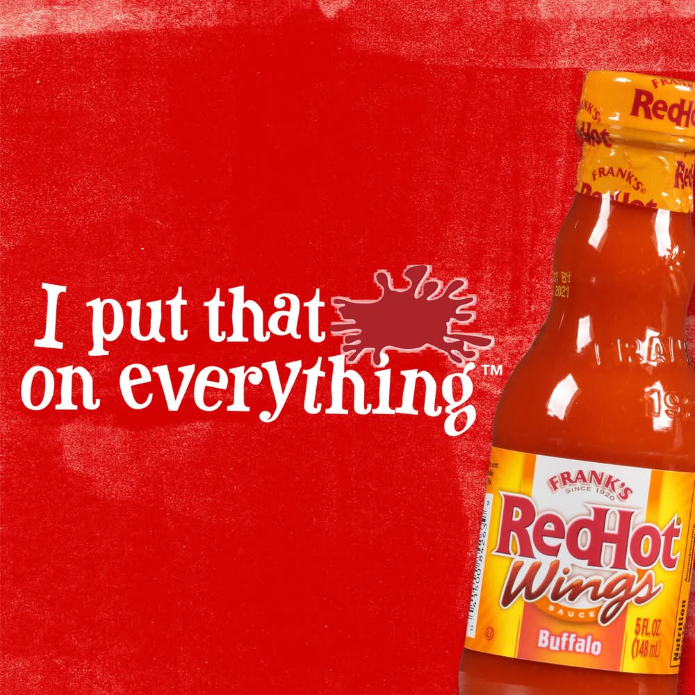 If you're a buffalo hot wings lover, Frank's RedHot® Buffalo Wings Sauce is the not-so-secret-anymore ingredient to making restaurant-style wings at home. Ready to use straight from the bottle, it delivers buffalo-style flavor and heat to everything from eggs to tacos, chili, buffalo chicken dip, appetizers, and so much more. Size: 5 OZ