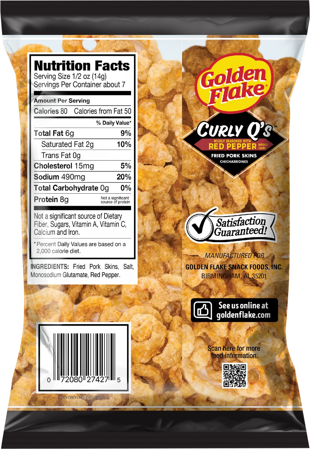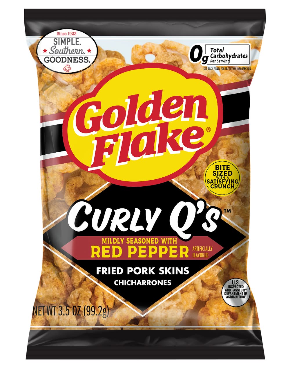 Golden Flake Curly Q’s Fried Pork Skins, Red Pepper (3.5 oz)