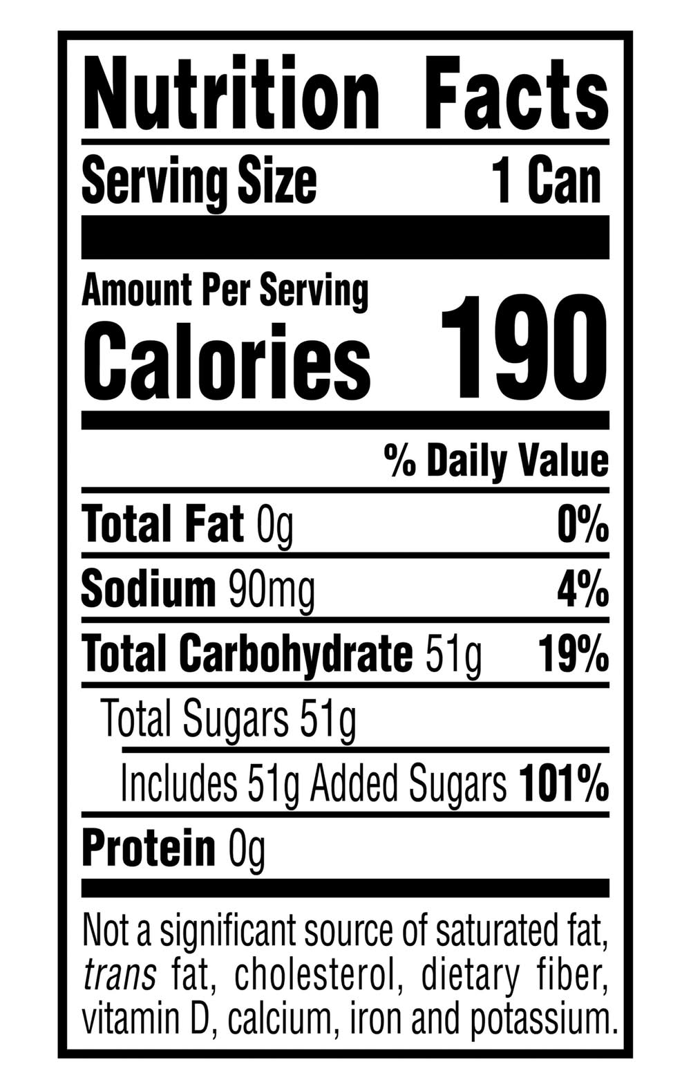 Ingredients: Carbonated Water, High Fructose Corn Syrup, Citric Acid, Natural Flavors, Sodium Citrate, Sodium Benzoate (to Protect Taste) Contains: Corn