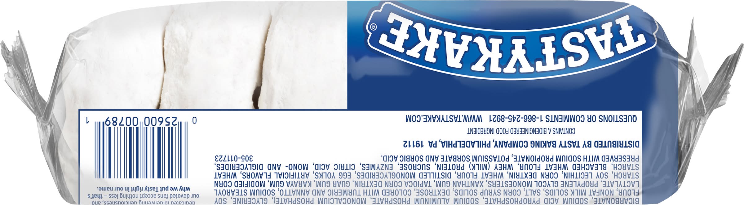 Bring home a ravishing and delightful dessert with the pack of Tastykake Powdered Mini Donuts. The delightfully delicious donuts are soft and crumble in your mouth as you take a bite. The smooth and savory texture of the donut will fill your tongue with a unique taste. The donut is rich in milk protein and calcium. Get your pack of Tastykake Powdered Mini Donuts before it goes out of stock.Consuming baked or fried foods (including chips, pretzels, cookies, crackers, nuts, cakes, pastries, bread, bagels, cereal, biscuits, tortillas and pizza crust) can expose you to chemicals including acrylamide, which is known to the State of California to cause cancer. For more information go to www.P65Warnings.ca.gov/food. Tasty Baking Company, Philadelphia, Pa, 19112.