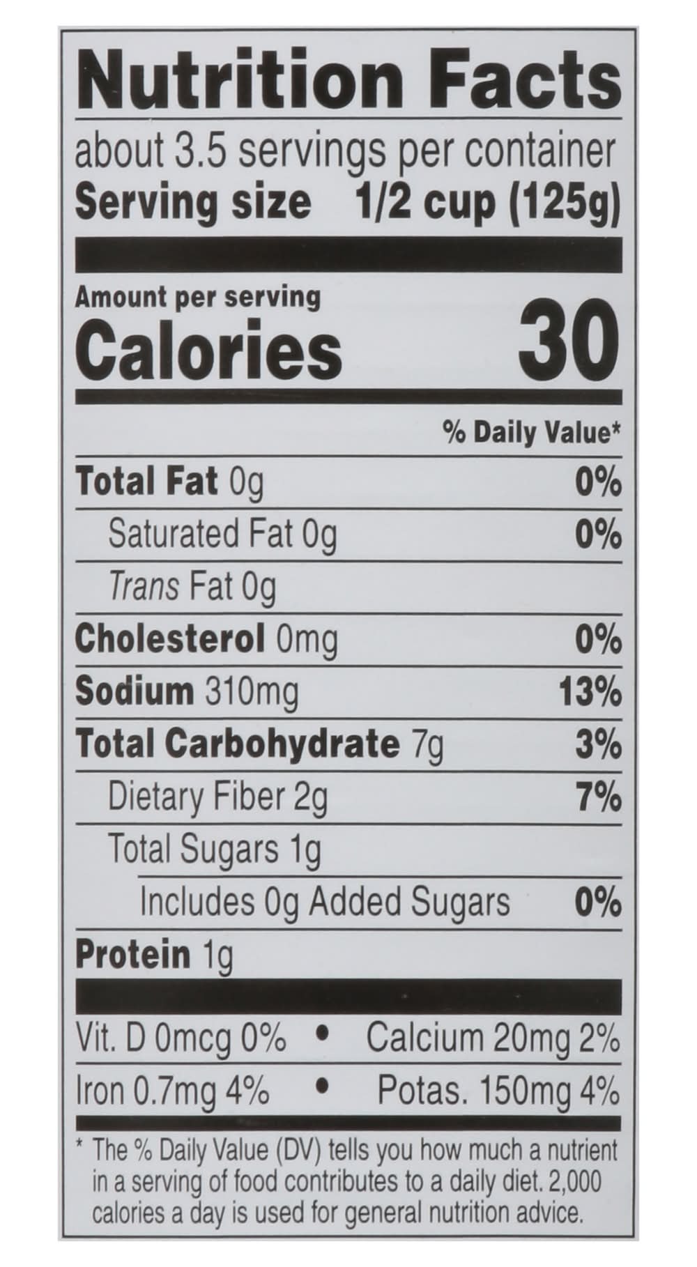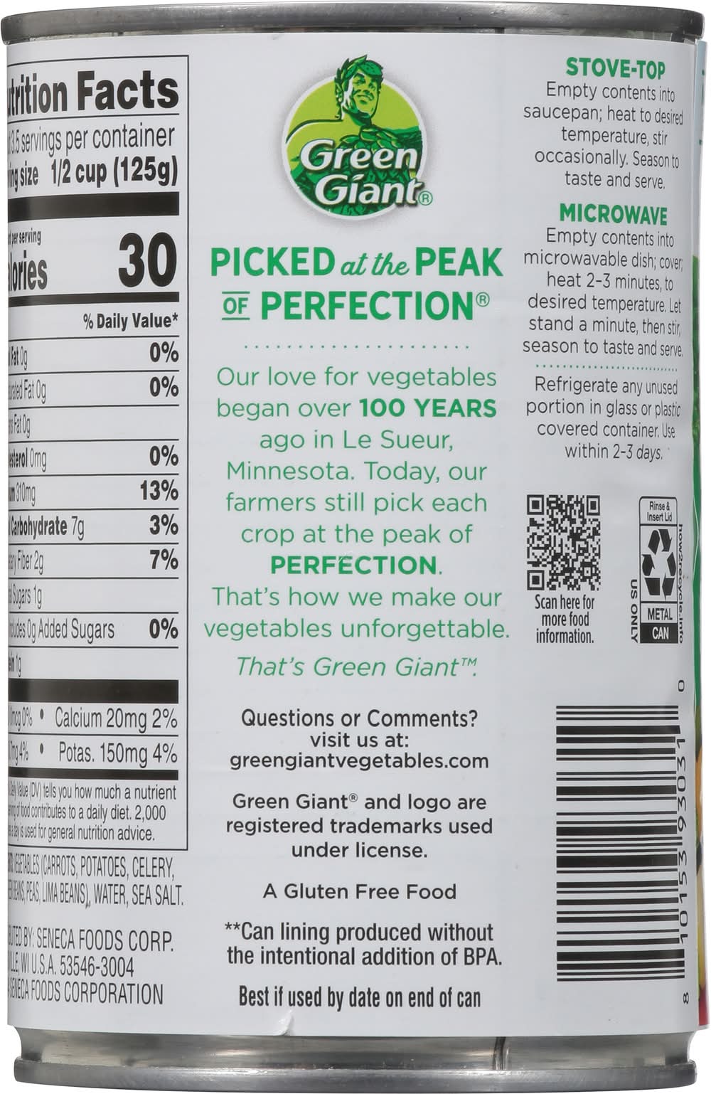 Ingredients: Vegetables (Carrots, Potatoes, Celery Corn, Green Beans, Peas, Lima Beans), Water, Sea Salt Contains: Celery