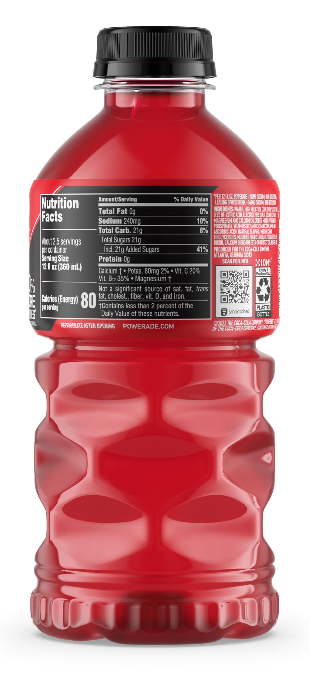 Parade your way from fatigue with Powerade Fruit Punch Electrolyte Drink. Worried about breaking a sweat from tiredness? Looking for a perfect electrolyte drink? Get the Powerade Fruit Punch drink to keep your body in peak performance. Go clutch from the word go on your intense cardio sessions. Feel the power, the aid to perform. Get Powerade! • Flavor: Fruit punch • The Coca-Cola Company, Atlanta, 2GA, 30313 • Packaging: Reusable