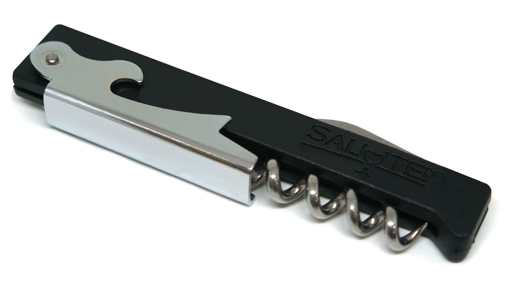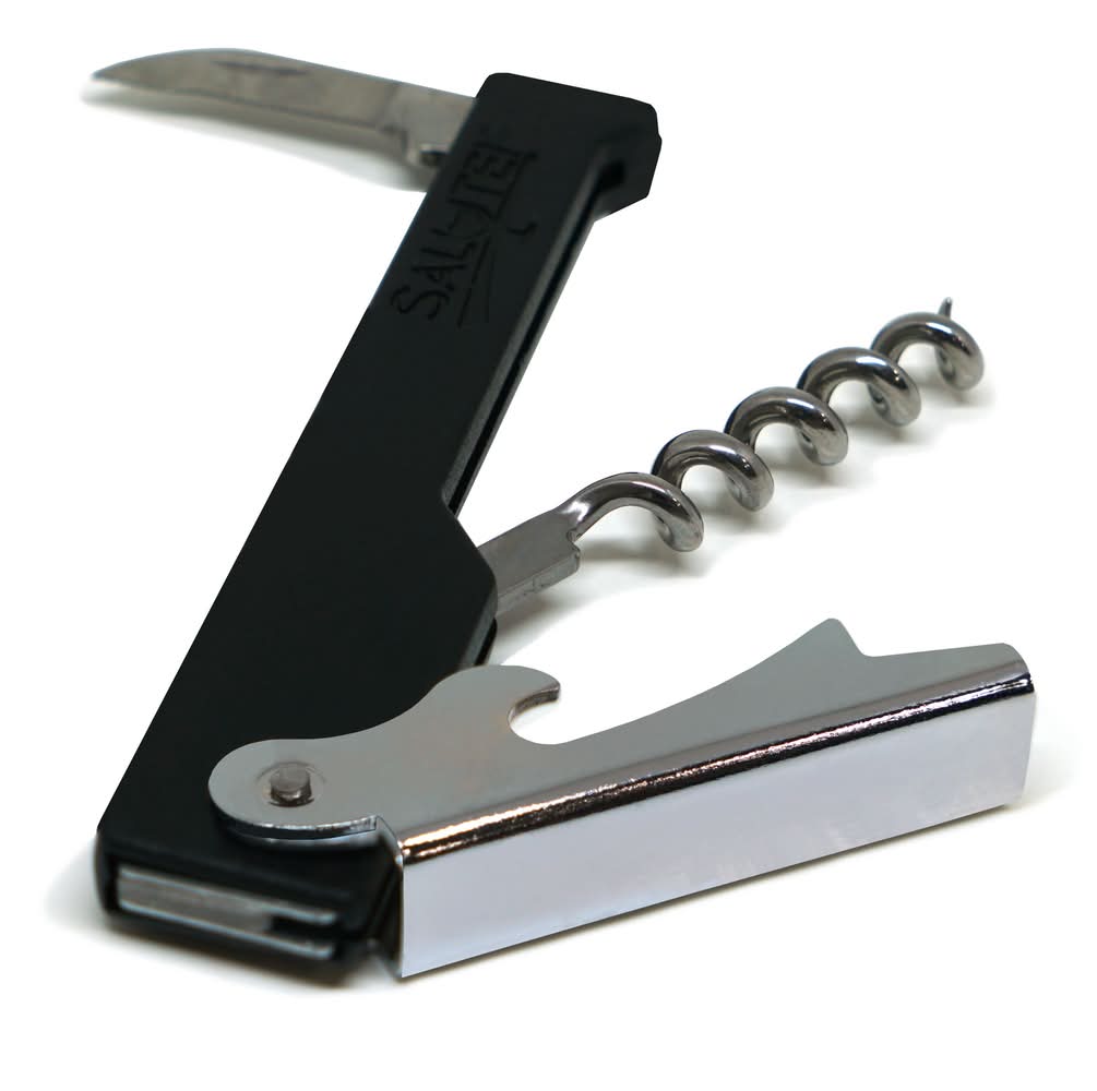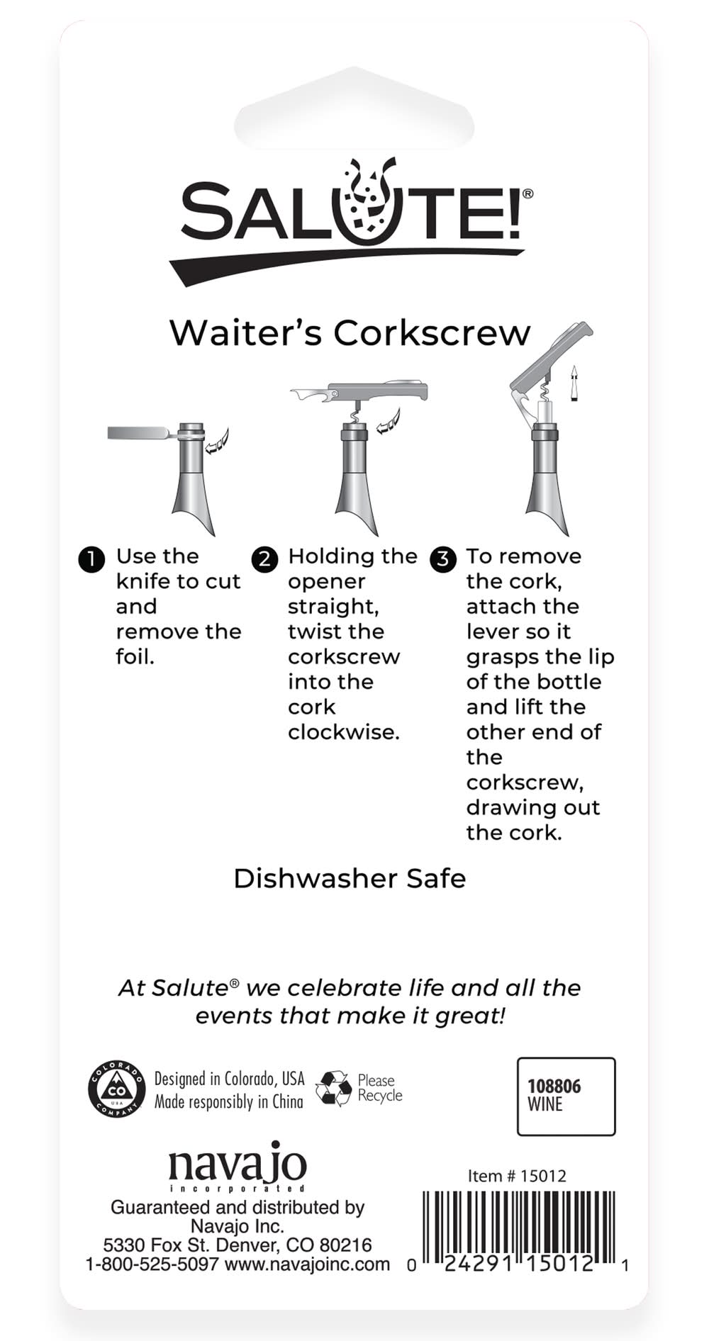 Crafted with a Pakka wood handle and stainless steel hardware, the Curve Waiter's Corkscrew features a five-turn worm and an integrated foil cutter. Its ergonomic curved handle is designed for efficient and straightforward wine opening.