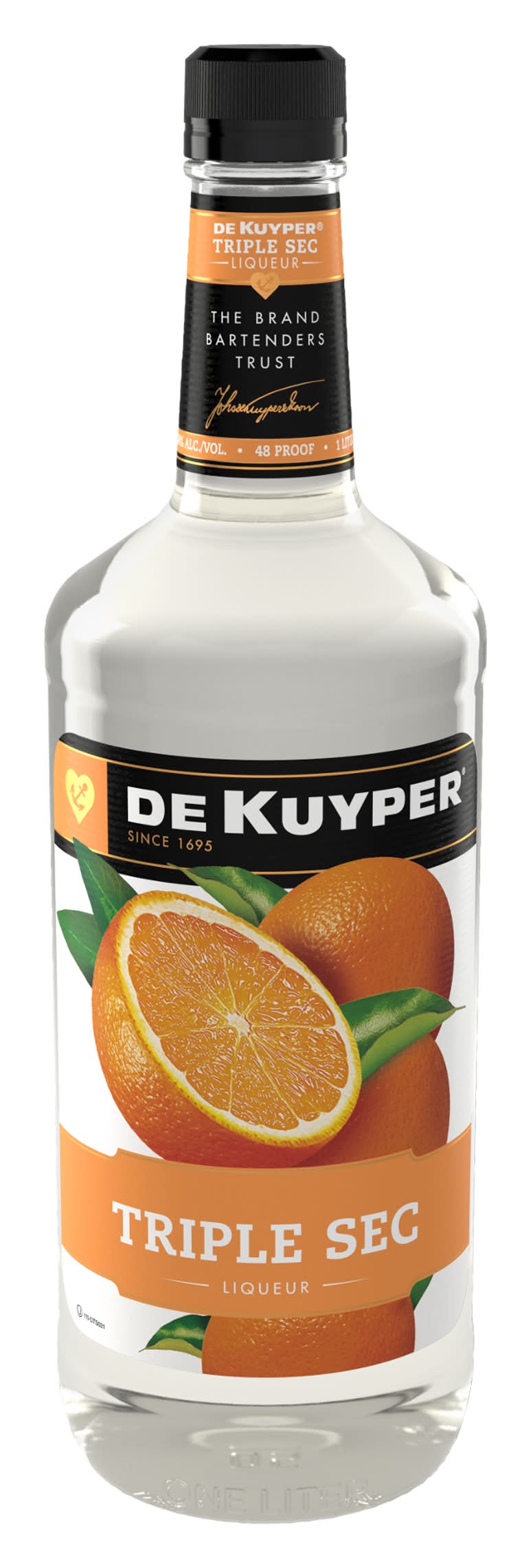 DeKuyper Triple Sec Cordial brings the essence of orange to your favorite cocktails. DeKuyper's blend meticulously melds the flavors of sweet and bitter oranges from distilled dried peels for a one-of-a-kind liqueur. An essential ingredient in any bartender's repertoire, this cordial has a pronounced and lingering citrus taste. No margarita, long island iced tea, or cosmopolitan is complete without the distinctive orange flavor of triple sec. Since 1695, DeKuyper has been the brand bartenders trust to add color, flavor, and fun to any cocktail. Alcohol by volume: 24%