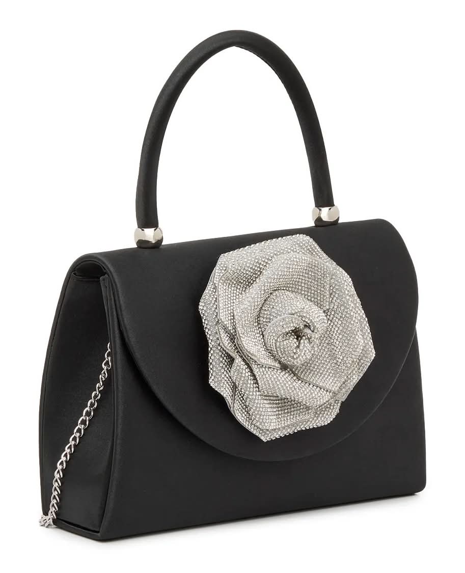 Kelly & Katie 3D Flower Satin Satchel (Black One Size)