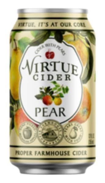 Virtue Cider Pear offers a semi-sweet flavor profile, crafted through the blending of heirloom Michigan apple cider with fine pear juice. The apples used in the creation of this cider are handpicked and pressed on a farm that utilizes solar power. Its taste is reminiscent of Sauvignon Blanc, catering to a broad range of palates. Each package contains six 12 fluid ounce bottles. • Pack size: 6 • Alcohol by volume: 5%