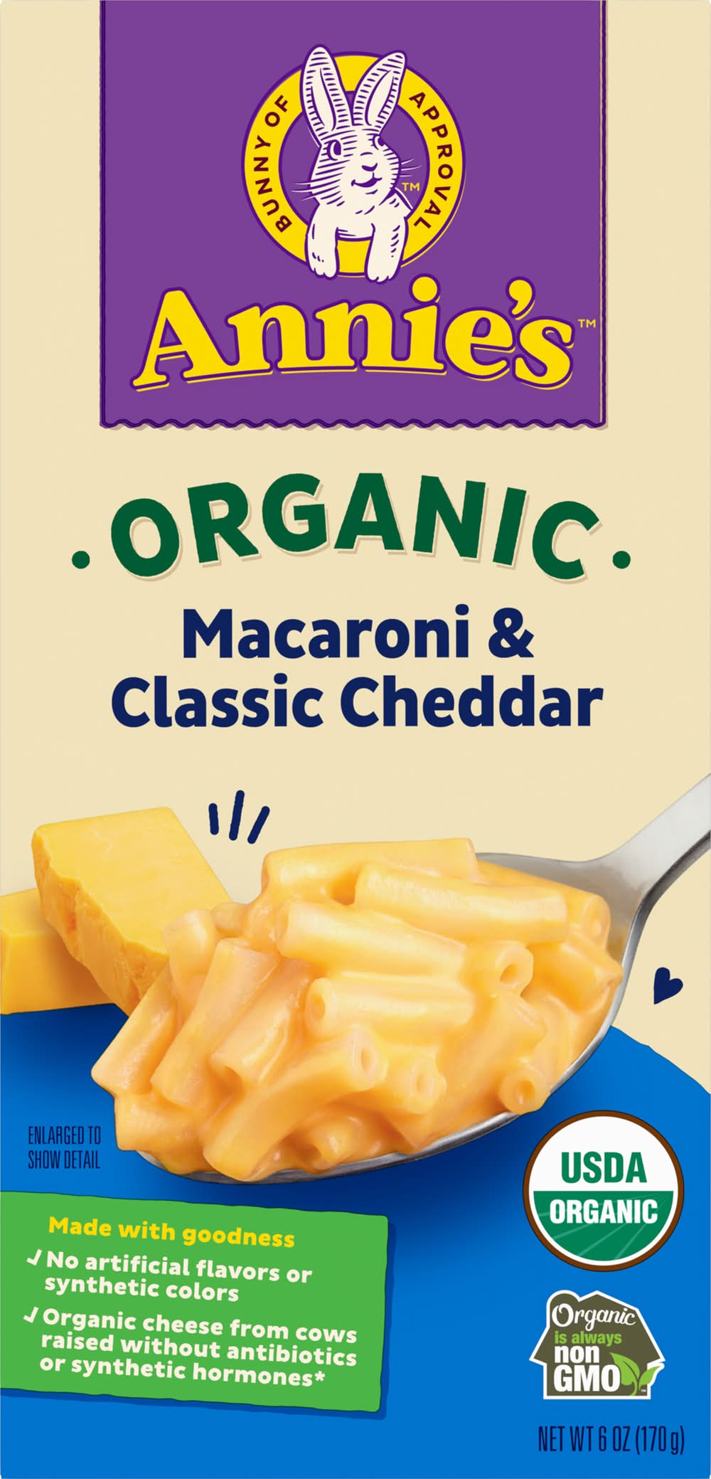Organic Macaroni & Classic Cheddar • Annie's, Inc., 1610 5th Street, Berkeley, CA, 94710 • Packaging: Reusable