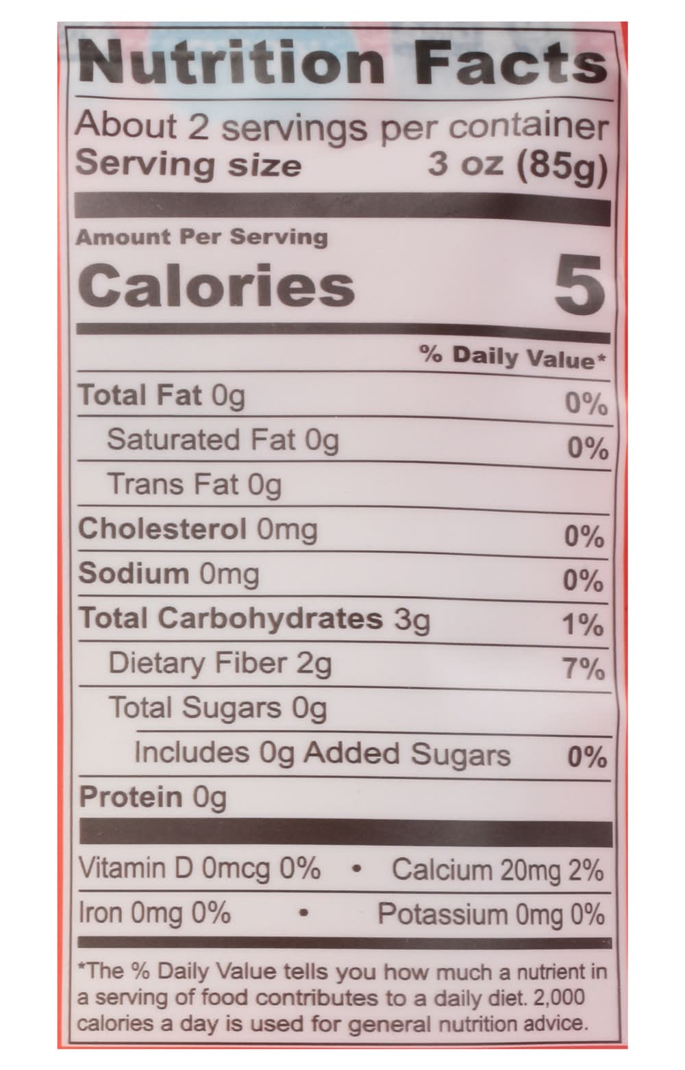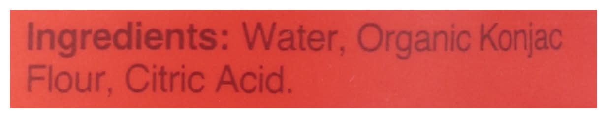 Ingredients: Water, Organic Konjac Flour, Citric Acid Contains: 'Free From Gluten'