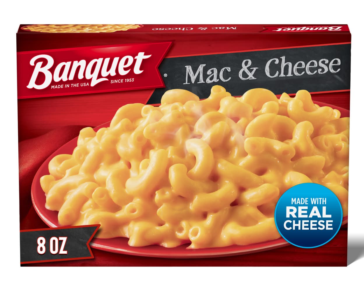 Banquet Mac and Cheese frozen meal brings a classic homestyle dish to your table in minutes. This frozen dinner features macaroni with a creamy cheese sauce for a delicious meal. Enjoy Banquet frozen meals any night of the week when you're in the mood for cheese macaroni, or pack these pasta meals for easy lunches that cut down on meal prep. Preparation of this frozen food is easy. Simply follow the instructions on the package to prepare frozen lunches and dinners in the oven for fresh-cooked taste or in the microwave for quick, prepared meals. Store the 10 ounce cheese macaroni and cheese frozen entrees in the freezer until you’re ready to enjoy. Proudly made in the U.S.A. for over 60 years, Banquet has been making delicious food the whole family loves. • Size: 10 OZ • Conagra Brands, P.O. Box 3534,Chicago,IL