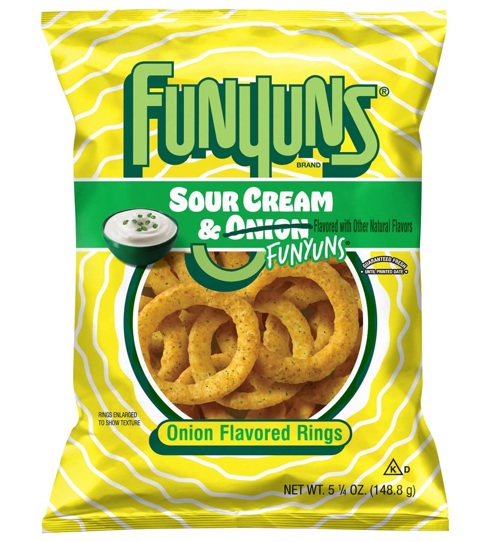 FUNYUNS Onion Flavored Rings are a deliciously different snack thats fun to eat, with a crisp texture and zesty onion flavor. Next time you're in the mood for a tasty treat that's out of the ordinary, try FUNYUNS Onion Flavored Rings. Flavor: Sour cream & onion