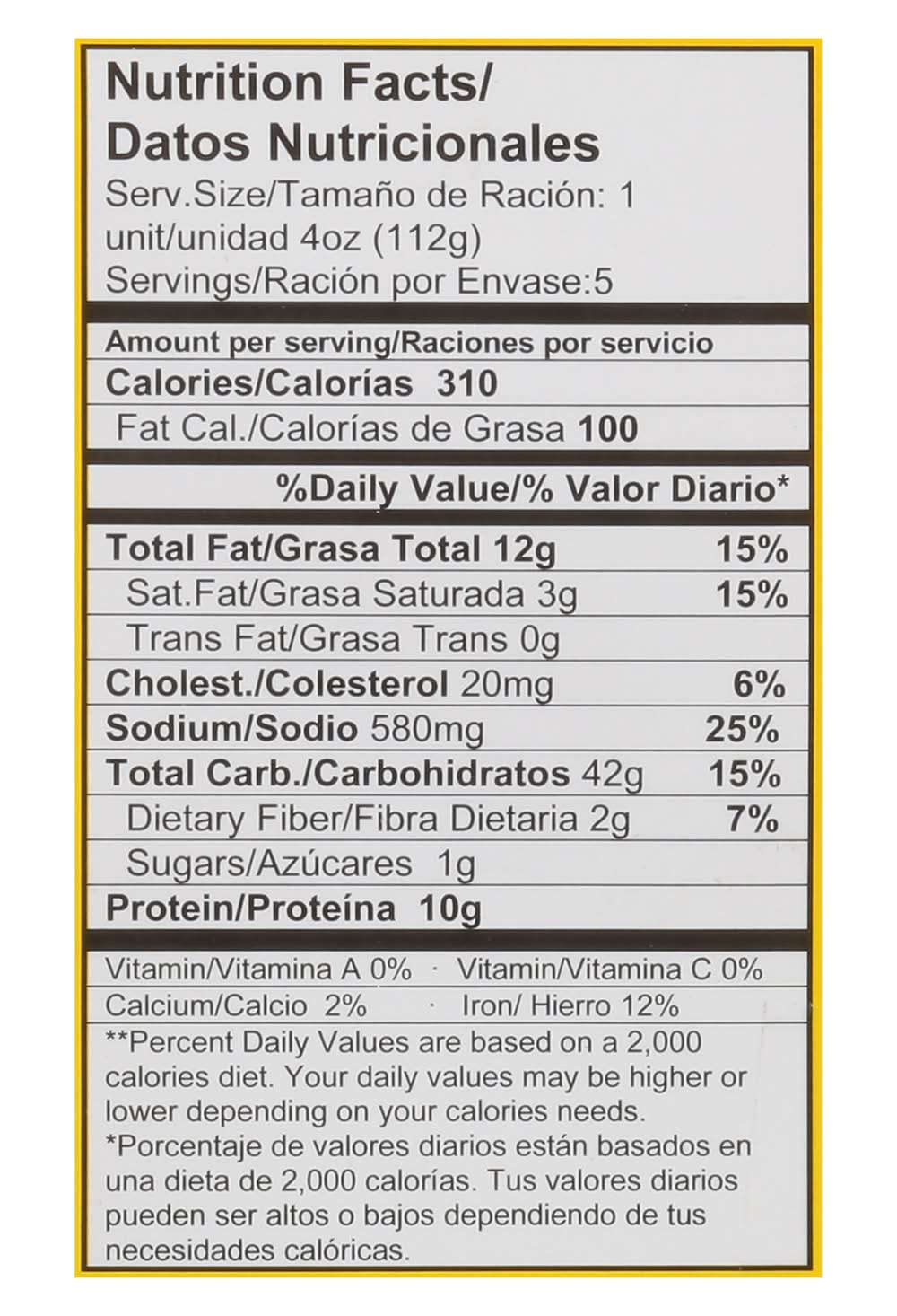 Ingredients: Dough: Enriched Bleached Wheat Flour (Bleached Flour, Niacin, Reduced Iron, Thiamin Mononitrate, Riboflavin, Folic Acid), Water, Vegetable Oil Shortening [Palm Oil, Palm Stearin, Distilled Monoglycerides and Diglycerides, TBHQ (Antioxidant)], Salt [Sodium Chloride, Potassium Iodate, Potassium Fluoride, Silicon Dioxide (Anticaking)], Sugar, Sodium Benzoate (as Preservative), Filling: Cooked Chicken, Water, Potatoes (Papas, Sunflower Oil), Green Beans (Green Beans, Water, Salt, Citric Acid), Tomato Paste (Tomatoes), Salt, Spice (Green Pepper, Cilantro), Onions, Monosodium Glutamate, Garlic, and Vegetable Oil {[Olein Palm, Antioxidants (BHT and Citric Acid)] or [Soy Bean Oil]} Contains: Wheat, Soybeans, Milk