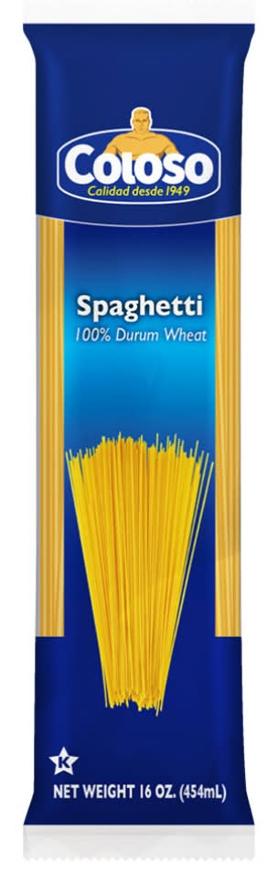 075366008007 Coloso Spaghetti (16oz) Prepara tus platos favoritos con el Spaghetti Coloso, hecho de trigo de calidad. Su textura firme y cocción perfecta lo hacen ideal para salsas y recetas tradicionales. Una opción versátil para toda la familia. Brand: Coloso