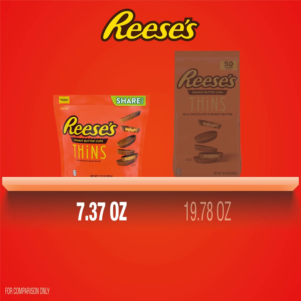 REESE'S THiNS Milk Chocolate Peanut Butter Cups, Candy Share Packs, 7.37 oz (8 Count) • Brand: Reese's • Flavor: Milk chocolate-peanut butter