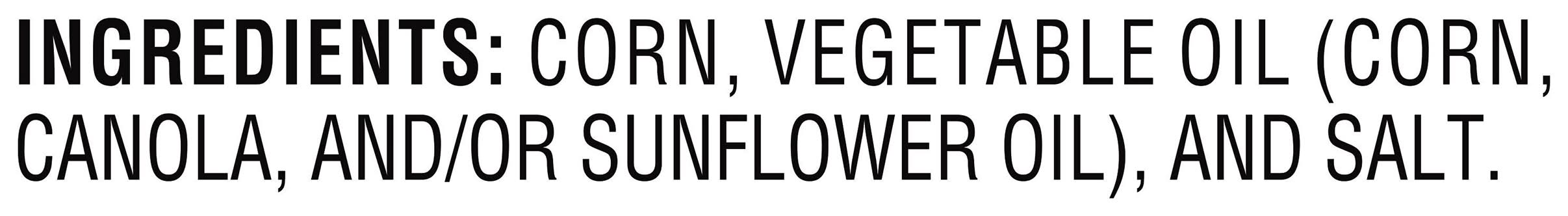 Ingredients: Corn, Vegetable Oil (Corn Canola and/or Sunflower Oil), and Salt