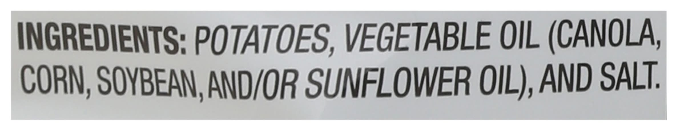 Ingredients: Potatoes, Vegetable Oil (Canola, Corn, Soybean, and/or Sunflower Oil), and Salt Contains: Corn, Soybeans