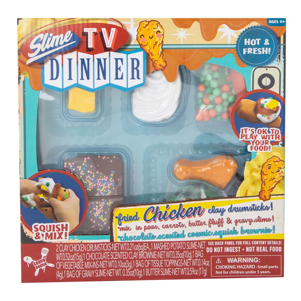 Get a Goopy Foody Food Slime Kit to cook up DIY delicious slime creations. So realistic & so much fun!The perf opportunity to play with your food.Collect them all for a slime-tastic feast!Do not ingestNot real foodAges: 6+ (Choking Hazard)Country of Origin: Imported Color: Tv dinner