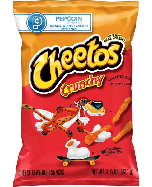 satisfy your snack craving with cheetos®! Cheesy, crunchy, savory…so delicious!size: 3.25ozCountry of Origin: usa