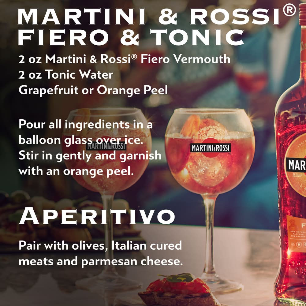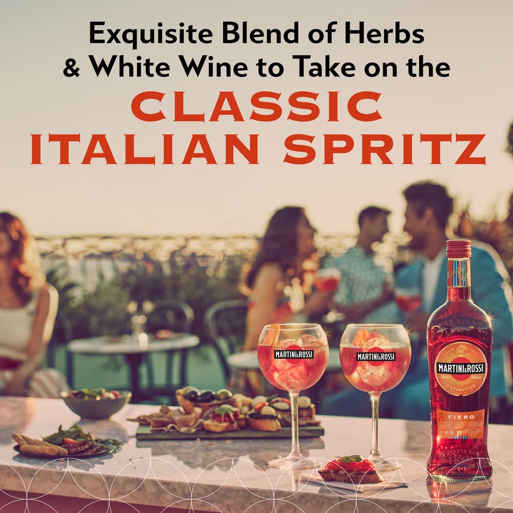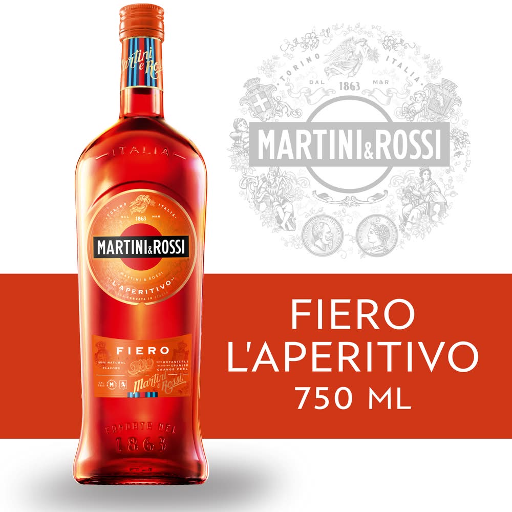 MARTINI & ROSSI Fiero is made with a blend of white wines and botanicals including Spanish orange peel for a delicious and balanced bittersweet orange taste. Alcohol by volume: 15%