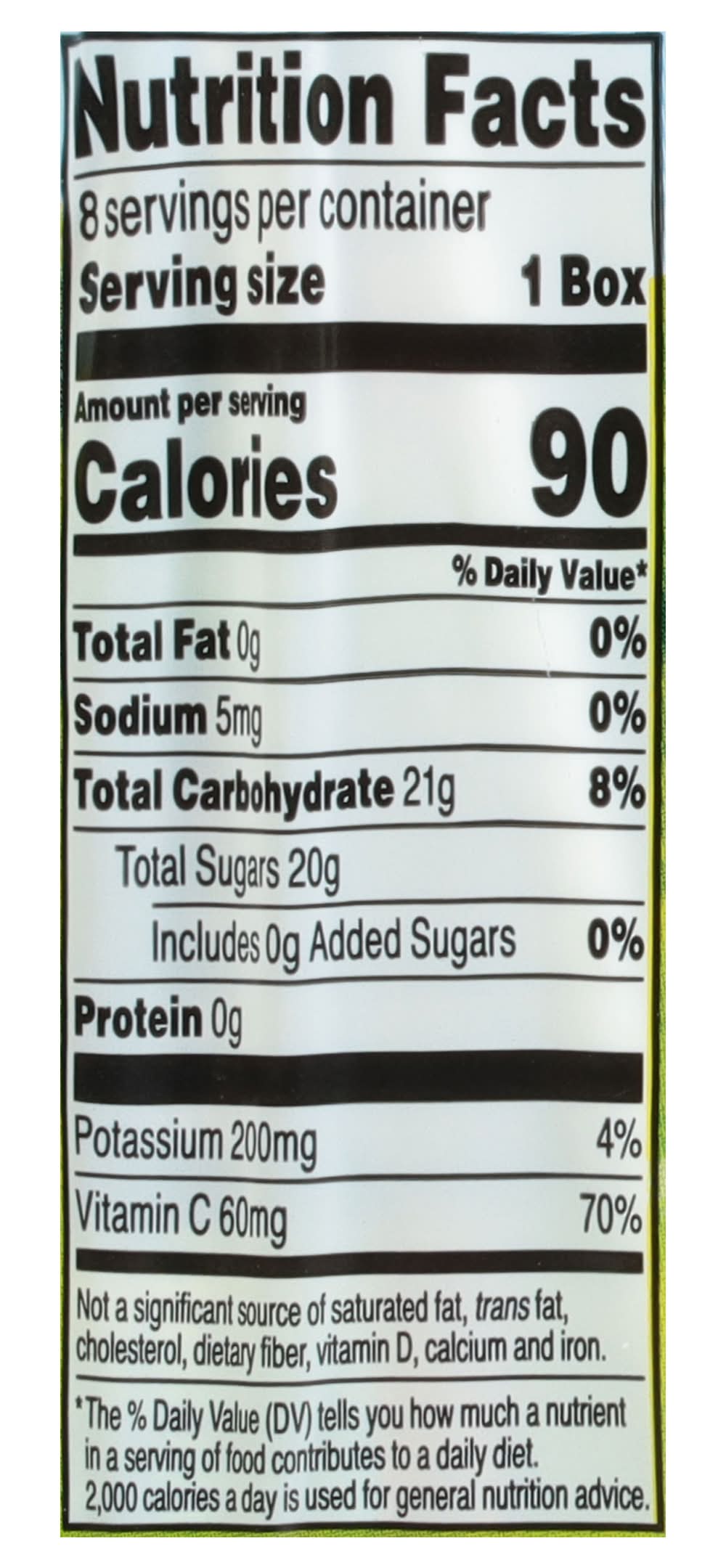 Ingredients: Apple Juice (Filtered Water, Apple Juice Concentrate), Ascorbic Acid (Vitamin C), L-Malic Acid (for Tartness)
