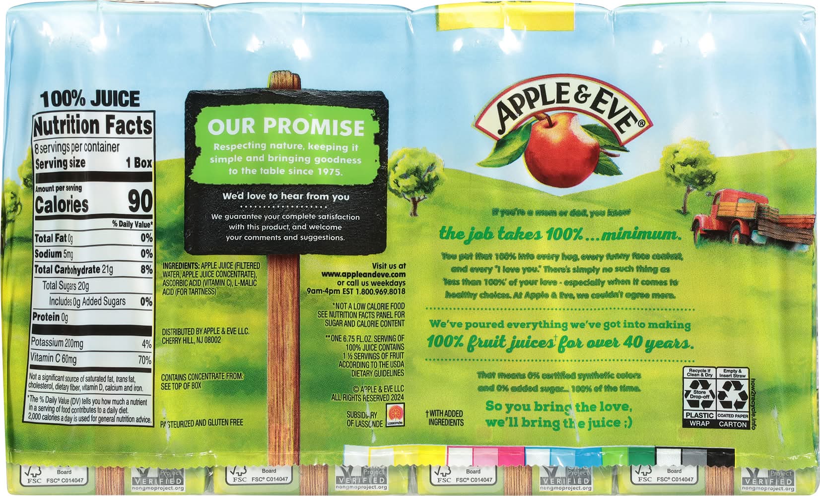 100% Juice • Pack size: 8 • Apple & eve, PO Box K Roslyn, NY 11576 • Packaging: Reusable