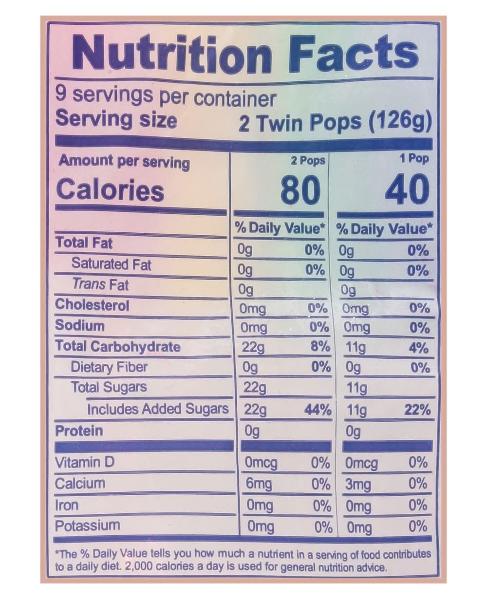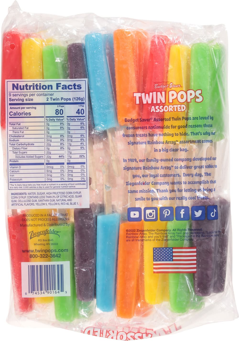 Twin Pops, Assorted • Flavor: Assorted • Ziegenfelder, PO Box 6645 Wheeling, WV 26003