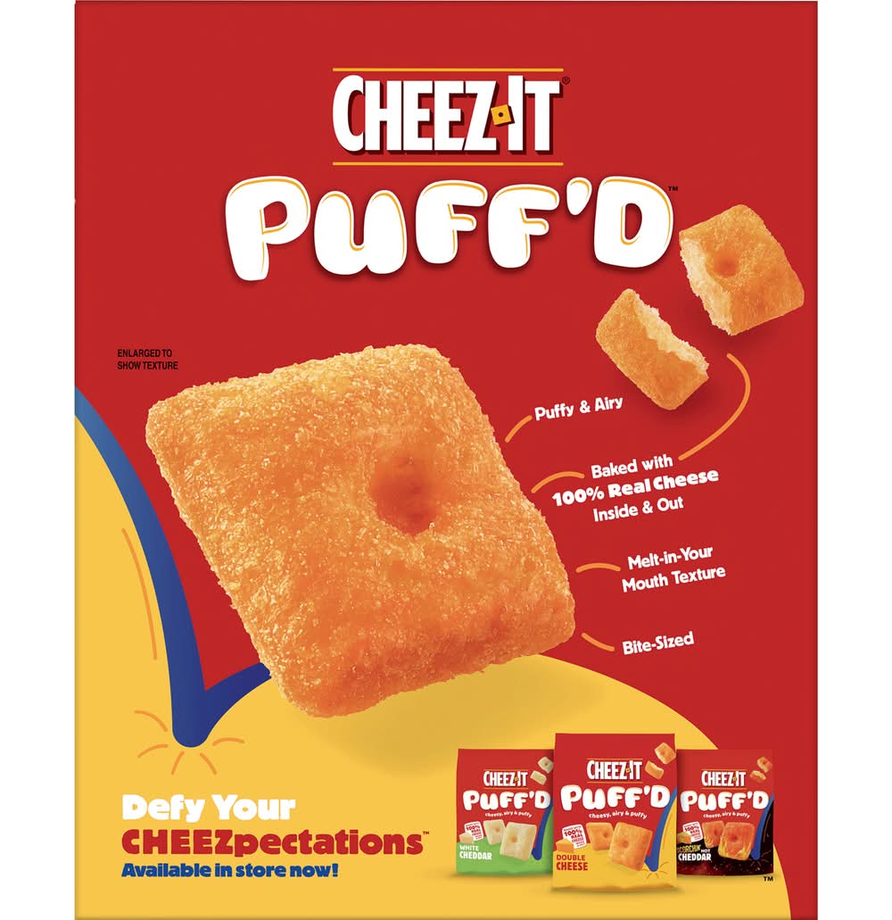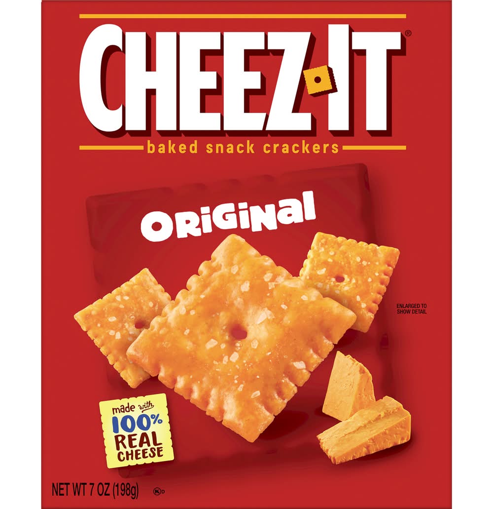 Outrageously cheesy and ridiculously craveable, Cheez-It baked snack crackers are deliciously crunchy little crackers that have captured cheese-lovers for decades. Discover a crowd-favorite snack made with 100% real cheese baked to crispy perfection for an irresistible taste in every crunchy bite. Each lightly salted cracker is loaded with a burst of cheesy flavor; Cheez-It baked snack crackers are a fan-favorite for game night, school snacks, family movie nights, party spreads, late-night snacking, and so much more, the cheesy options are endless. Delicious for all ages, grab a box of Cheez-It Original crackers for every family snacking moment. Whether you're packing them in school lunches, grabbing some for the office, or taking along on a road trip, you'll find a delicious, crisp snack that is filled with big cheese flavor. It’s no wonder that these bite-sized crackers have become a crowd-favorite, bringing smiles and that urge for just one more handful. • Kellogg Sales Co., Battle Creek,MI,49016 • Packaging: Reusable