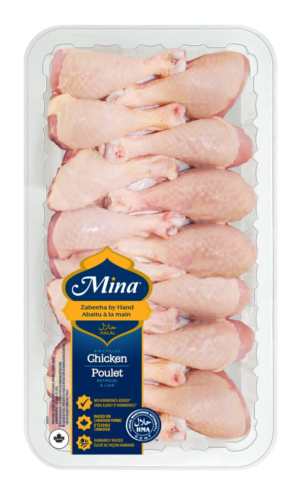 Serve your family and friends delicious halal chicken with Mina® Halal Chicken Drumstick Value Pack. Humanely raised on Canadian farms, These grain-fed chicken is strictly Zabeeha by hand. The raw chicken drumsticks are air-chilled to hold the chicken’s natural flavour and keep it tender and juicy. These fresh chicken drumsticks are a delicious addition to a variety of home-cooked meals, or a snack enjoyed on their own with dipping sauce. Plus, the value-size package ensures there will be plenty for the whole family. A proudly Canadian brand, Mina® strictly adheres to the most stringent halal process and is verified by the Halal Monitoring Authority (HMA).