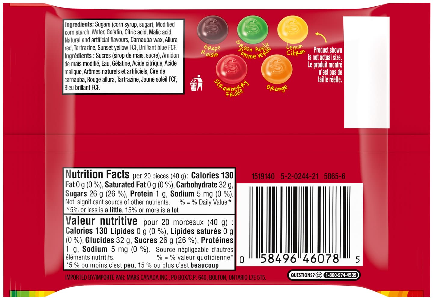 Taste the Rainbow with Skittles Gummies. Enjoy everything you love about Skittles chewy candy in gummy form. A soft and fruity mix of strawberry, orange, grape, lemon, and green apple flavoured candy. Forget gummy bears and gummy worms, find gummy candy awesomeness with soft and fruity Skittles Gummies. Enjoy gummy candy goodness like never before with Skittles Gummies. Individually wrapped packs of Skittles Gummies Candy are perfect for packing in your lunch, taking on road trips or enjoying as a midday treat.
