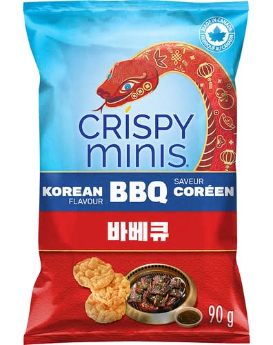 With hints of soy, ginger, and scallion, you'll love the tasty kick of bite-sized Crispy Minis Korean BBQ flavour brown rice cakes. Popped and never fried, they pack a satisfying and delicious crunch. These mini-sized Crispy Minis brown rice snacks are gluten-free, made with 7 g of whole grain brown rice per 15 g serving, have no artificial flavours or colours, and zero trans fat. They’re a snack you can feel good about. Flavor: Korean bbq
