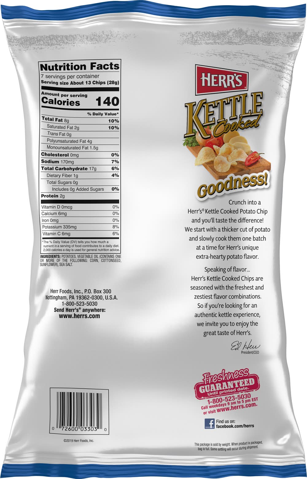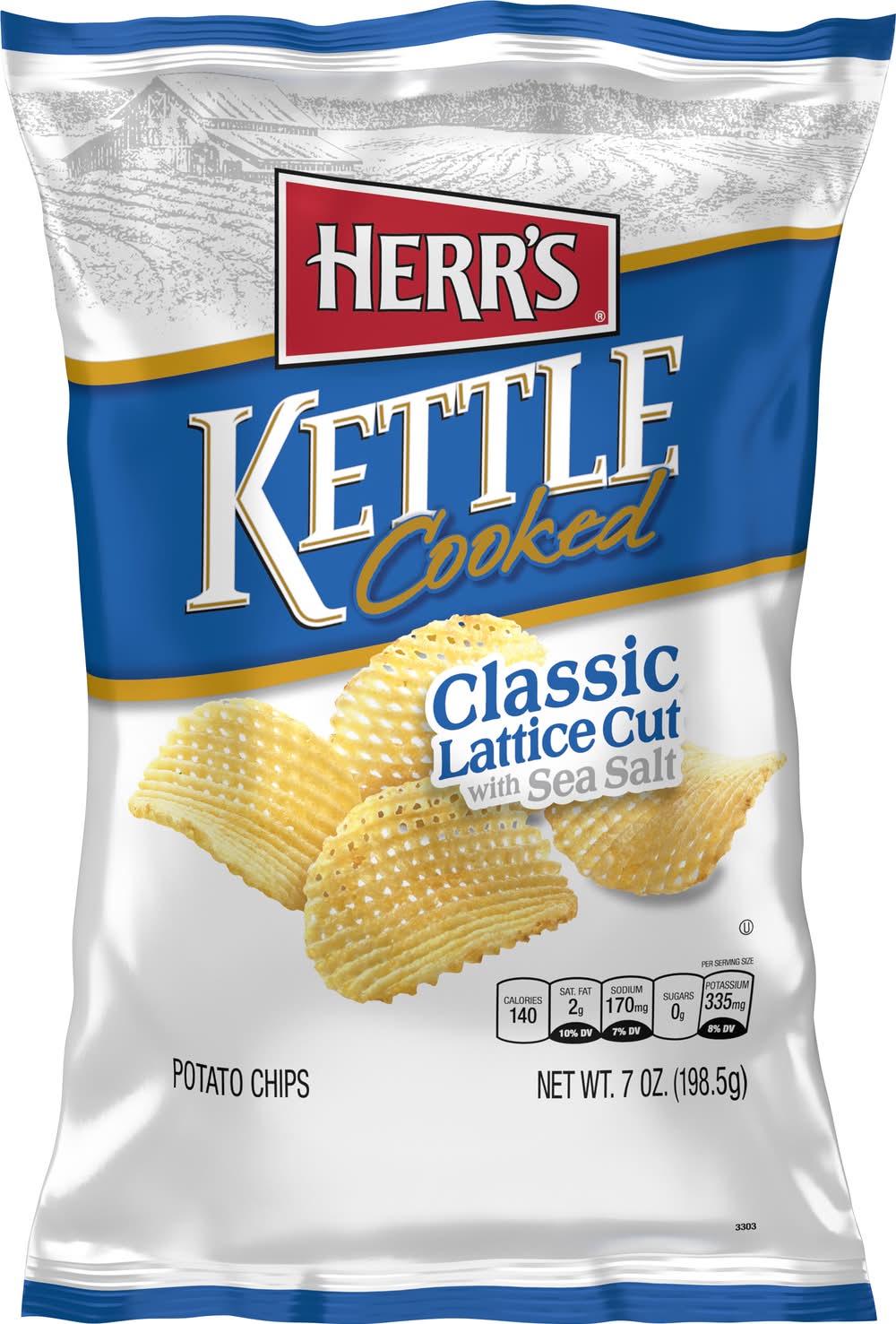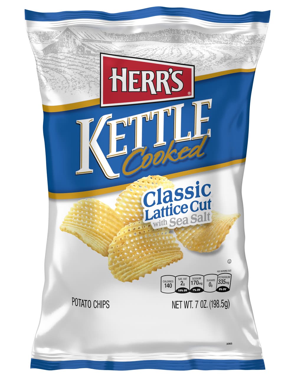Kettle Cooked Classic Lattice Cut with Sea Salt Potato Chips • Number of servings: 7 • Herr Foods, Inc., Nottingham, PA, 19362-0300, Ph: 800-523-5030