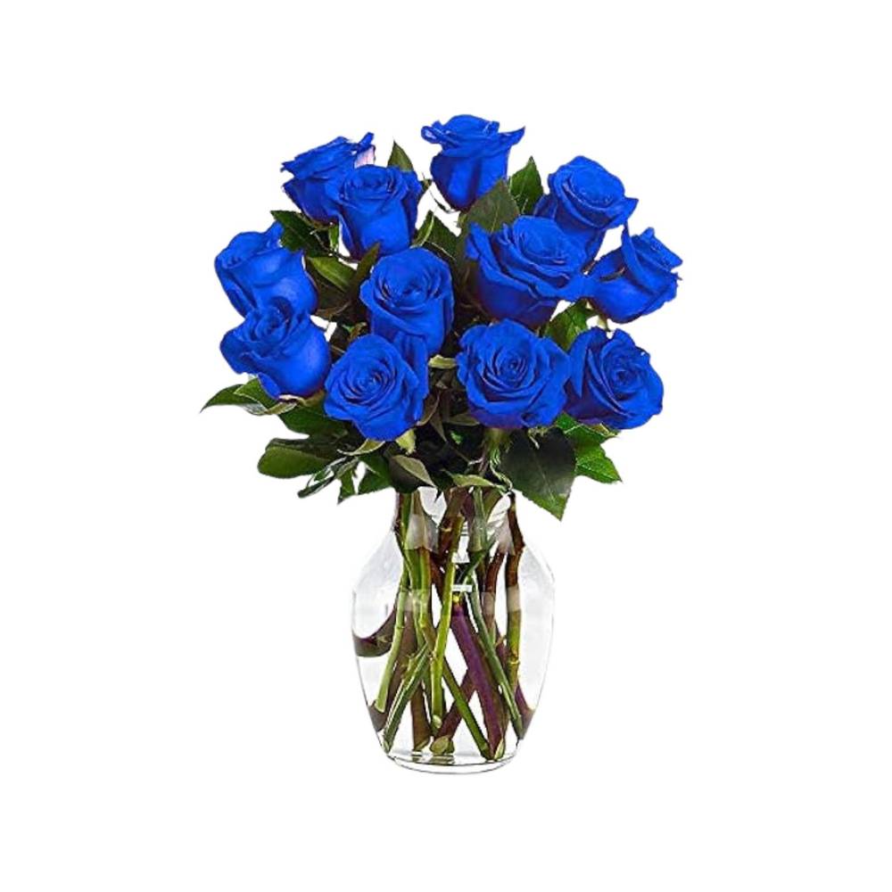 1 Dozen Longstem Color Roses In a Vase With Fillers-Blue