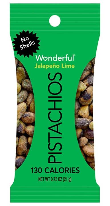 Grab a handful of these tasty pistachios when you’re feeling spicy. Jalapeño Lime Wonderful Pistachios No Shells combine bold jalapeño and sea salt with a twist of lime. Perfect for snackin’, they’re also good source of protein.. Flavor: Jalapeno lime
