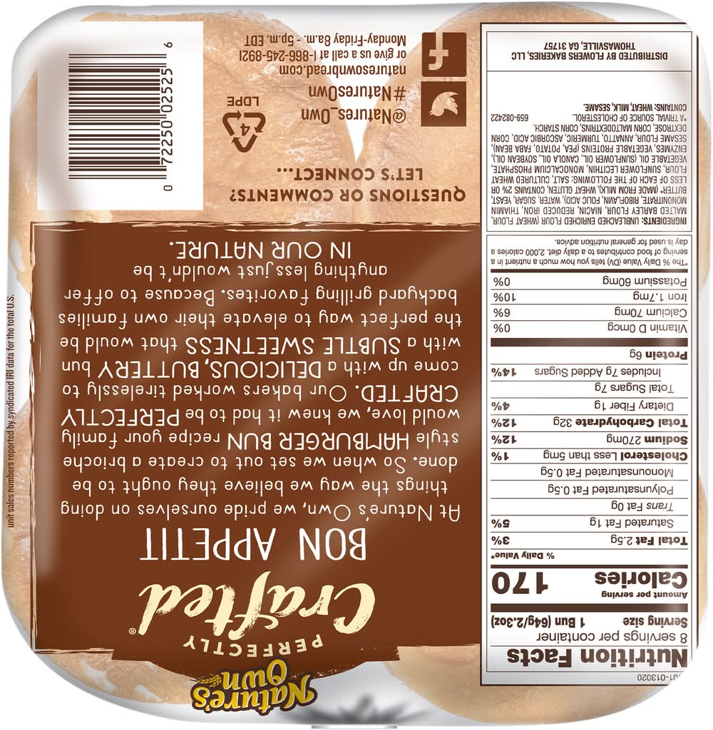 Nature's Own Perfectly Crafted Brioche Style Hamburger Buns (18 oz, 8 ct)