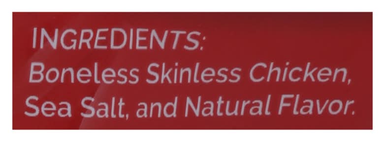 Ingredients: Boneless Skinless Chicken, Sea Salt and Natural Flavor.