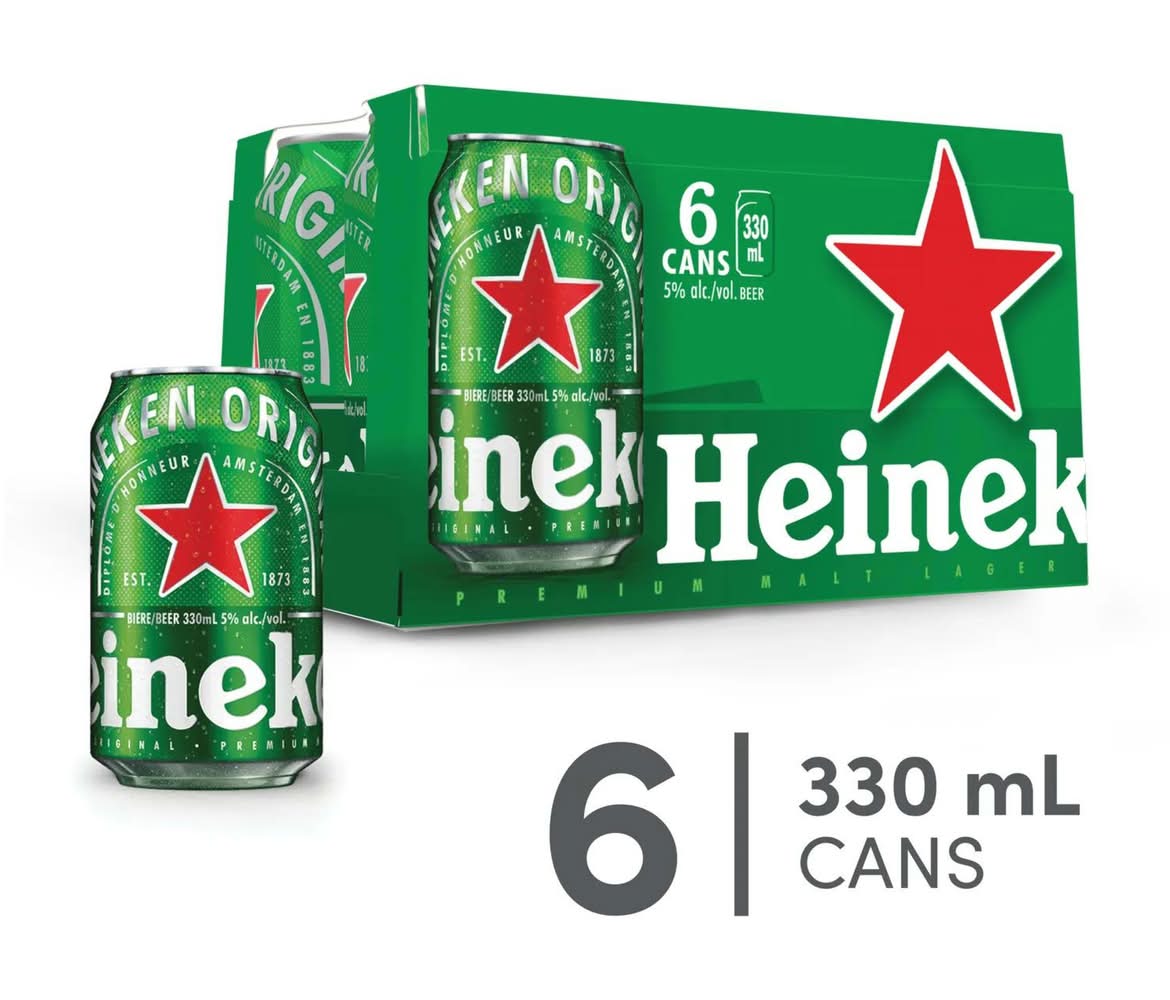 beer • Brand: Heineken • Pack size: 6 • Alcohol by volume: 5% • $0.60 deposit included