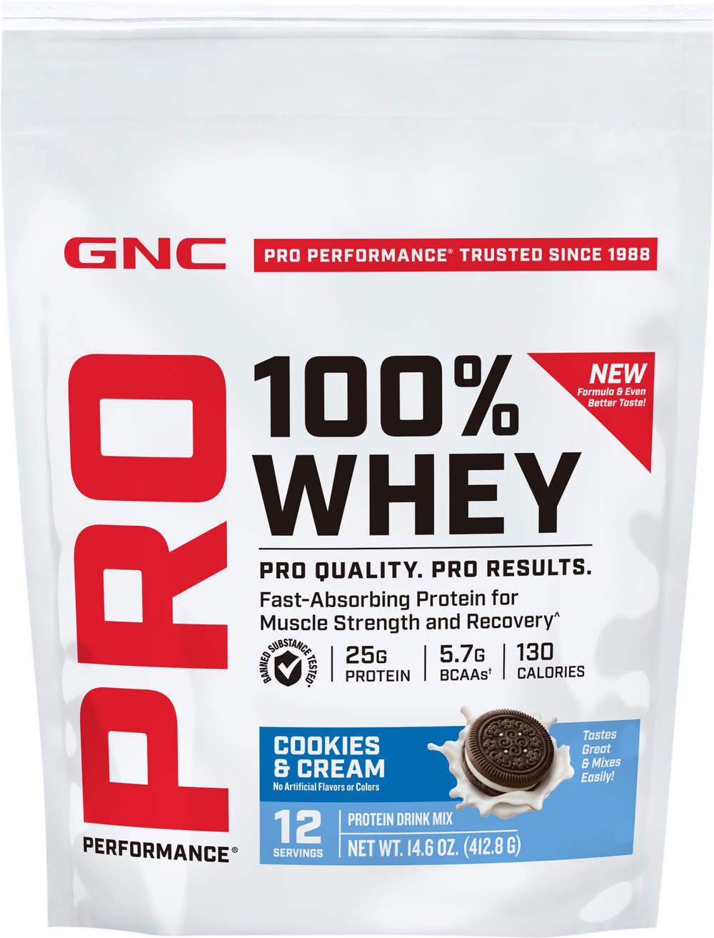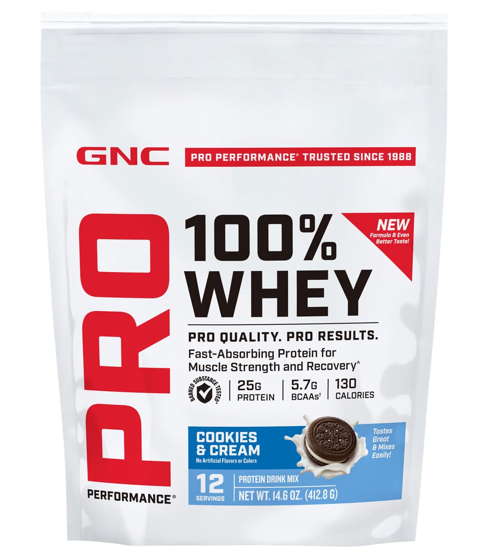 GNC Pro Performance Whey Protein Drink Mix, Cookies & Cream (14.6 oz)