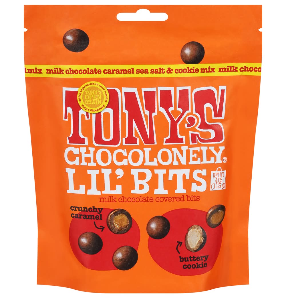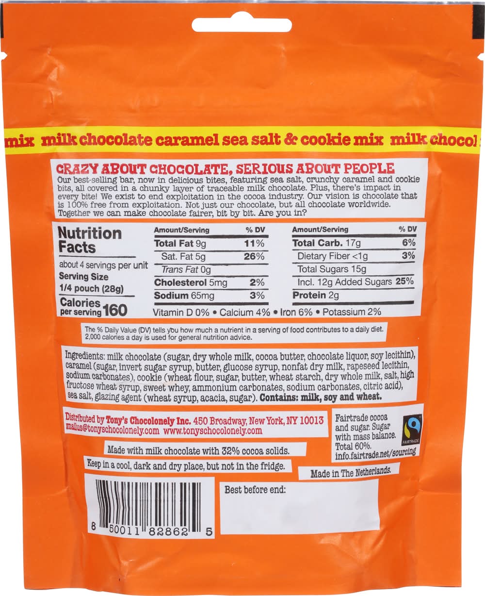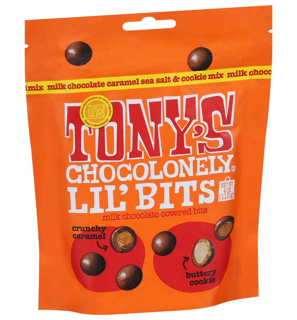 Tony's Chocolonely Lil' Bits Milk Chocolate Covered Bits, Crunchy Caramel Buttery Cookie (4 oz)