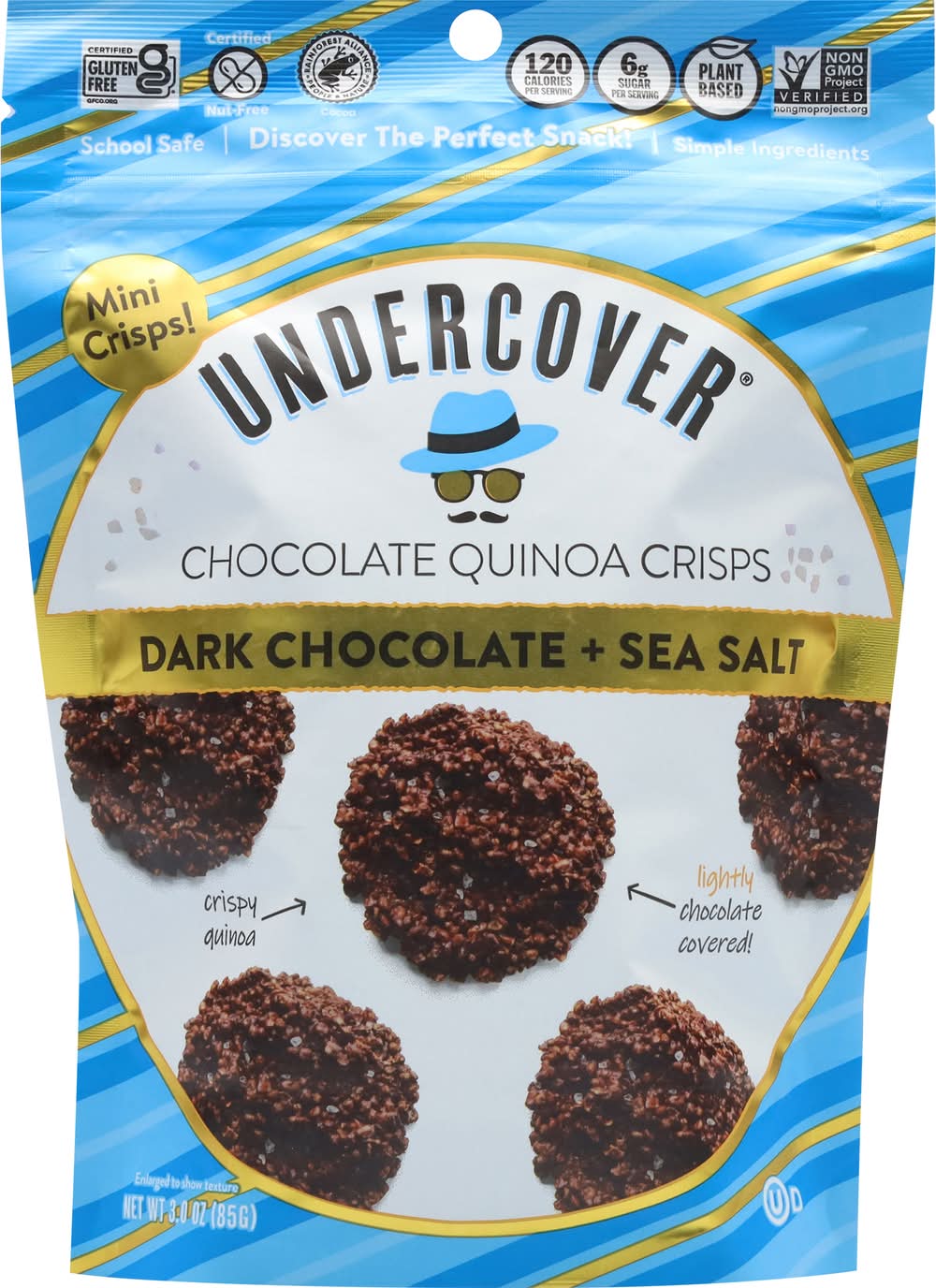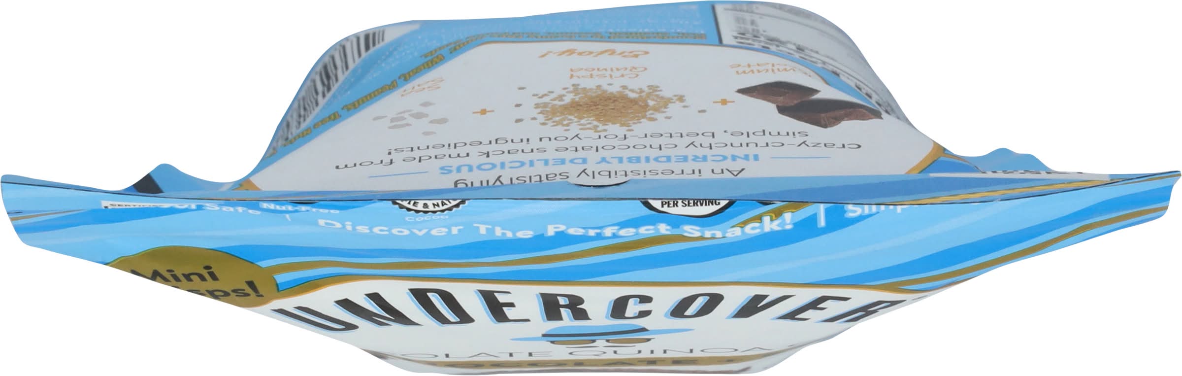 Discover undercover! An irresistibly satisfying incredibly delicious crazy crunchy chocolate snack made from simple, better-for-you ingredients! Premium chocolate + crispy quinoa + sea salt Enjoy! Shhh... there's healthy ingredients undercover.