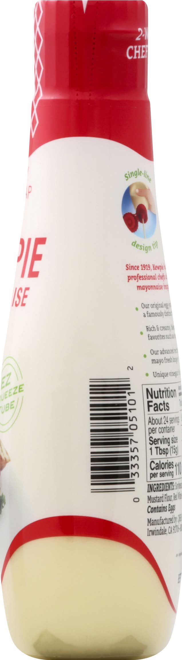 Certified 2-way chef wrap. EZ squeeze tube. Everything can use a little kewpie! Single line design tip. Star-shaped decorator. Since 1919, Kewpie has inspired home and professional chefs alike. Let our delicious mayonnaise inspire your inner chef. Our original egg-yolk mayonnaise with a famously distinct flavor and color. Rich & creamy, blends perfectly with favorites such as ketchup, mustard and sriracha. Our advanced technology bottle keeps Kewpie mayo fresh longer-no preservatives needed! Unique vinegar blend for a flavor like no other. Q & B Food, Irwindale,CA,91706