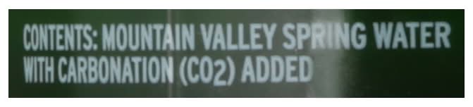 Ingredients: Mountain Valley Spring Water with Carbonation (CO2) added