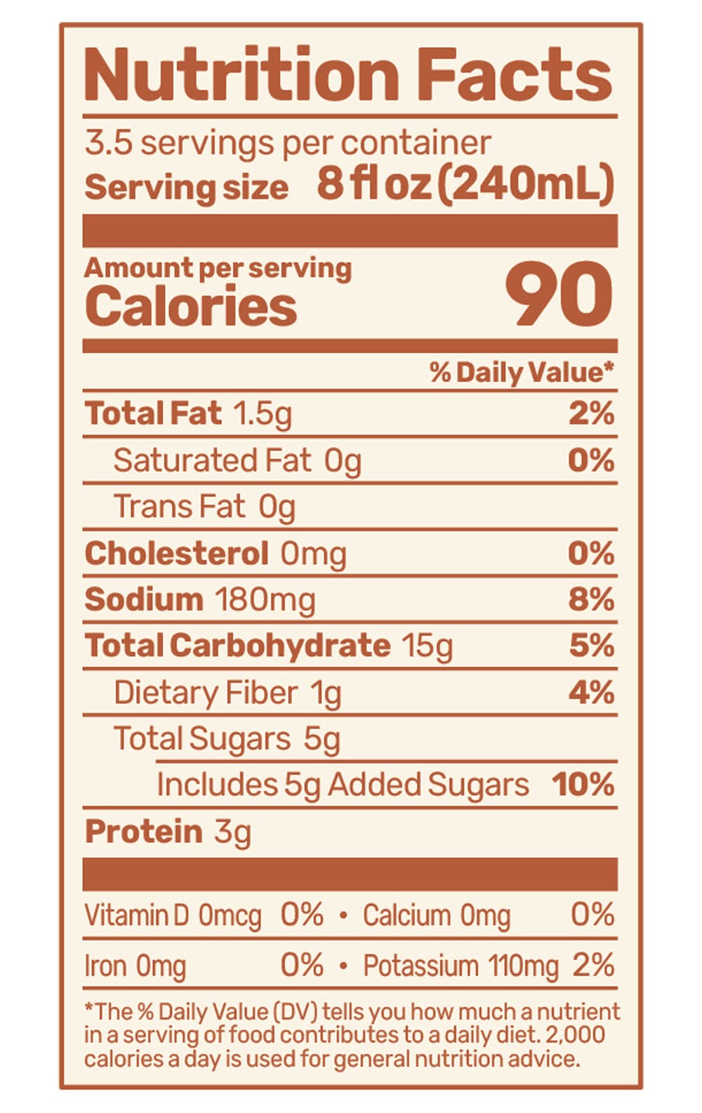 Ingredients: Filtered Water, Organic Gluten Free Oats, Himalayan Pink Salt Contains: Oat