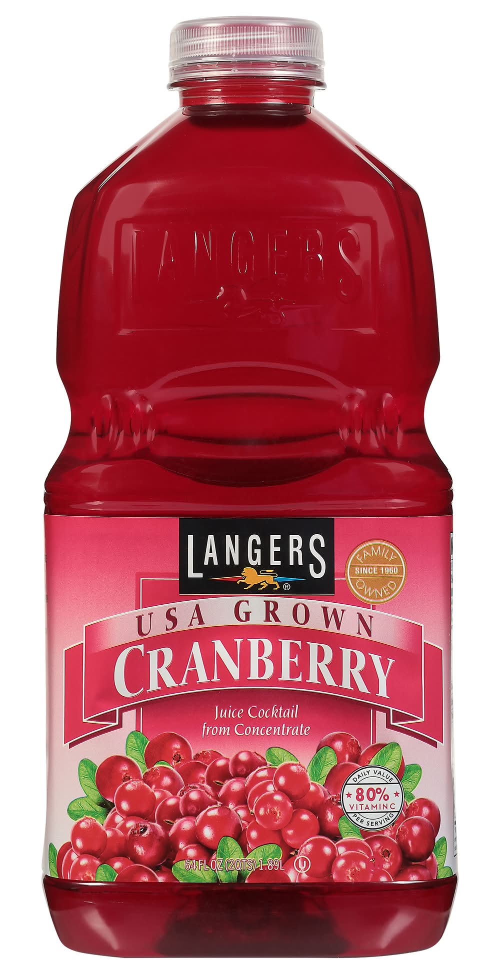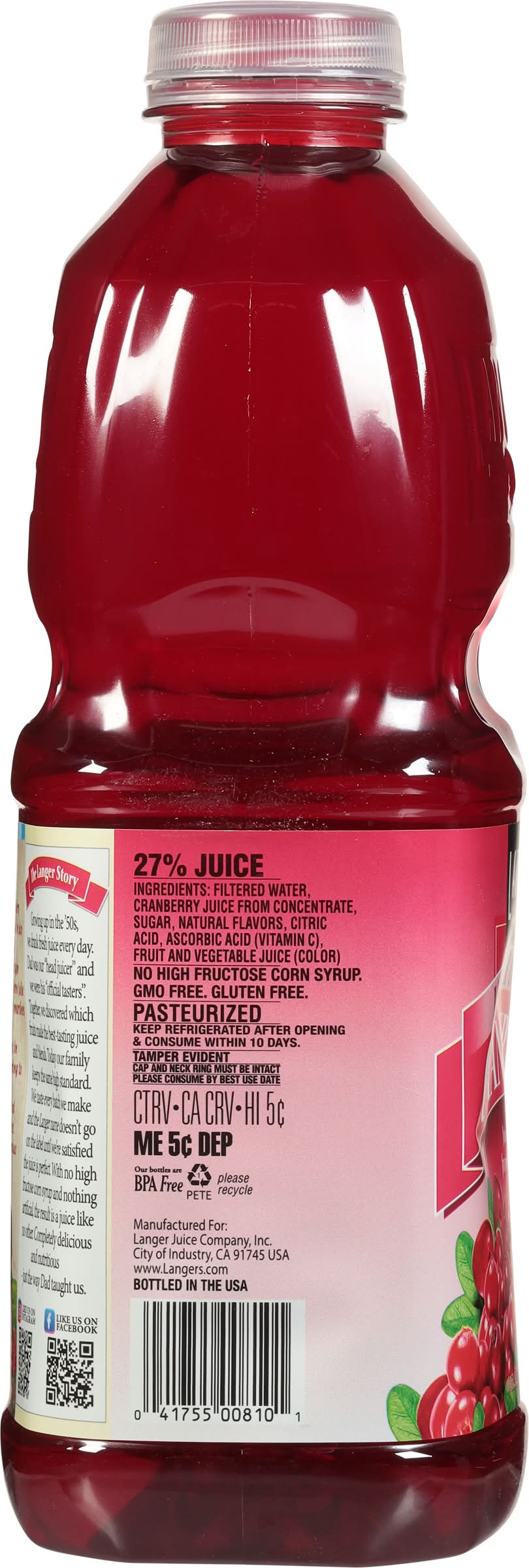 Langers Cranberry Juice Cocktail is a delicious blend of tangy cranberries; No high fructose corn syrup and nothing artificial. No GMO. Packaging: Reusable