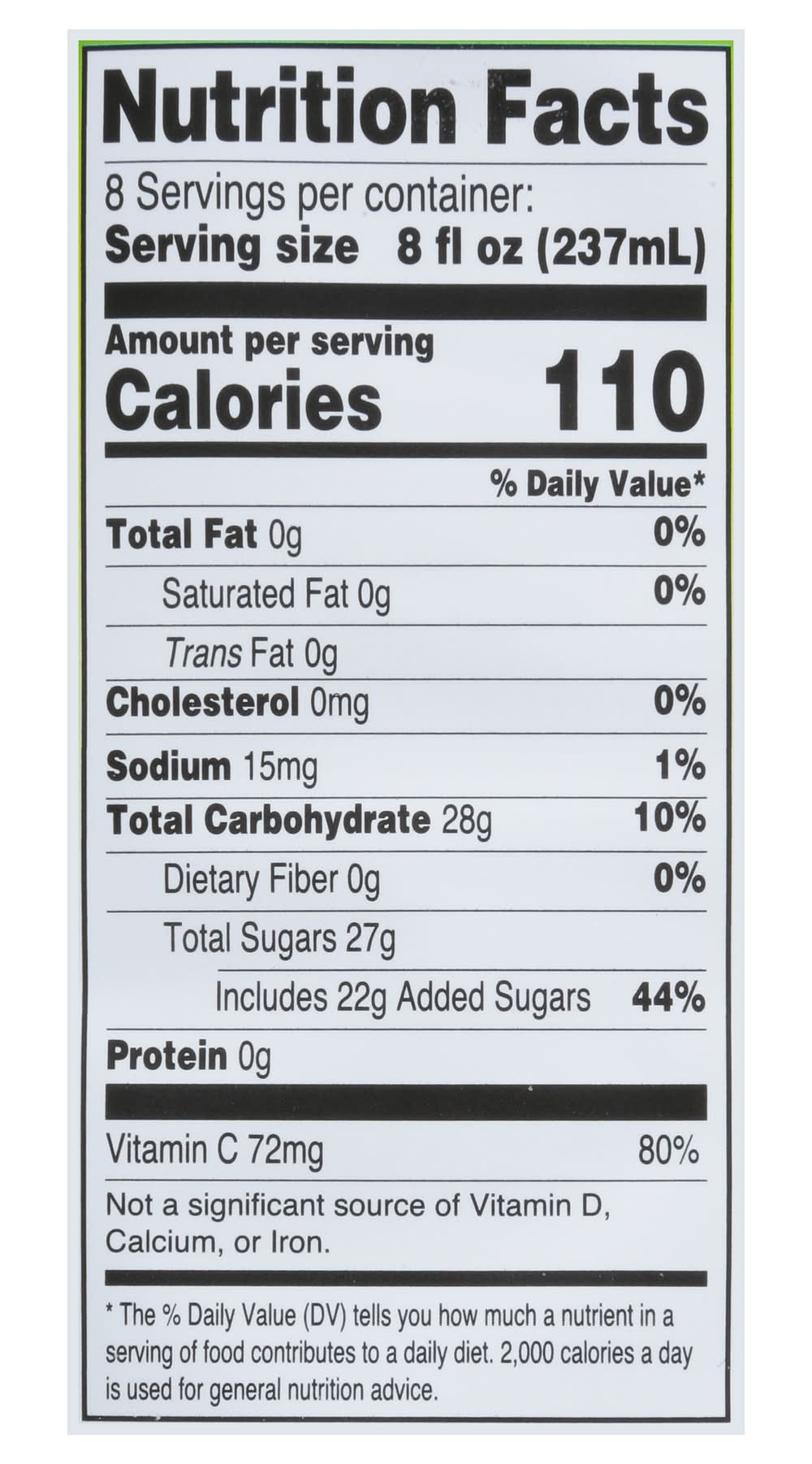 Juice Cocktail, from Concentrate, Cucumber Lime with Mint Number of servings: 8