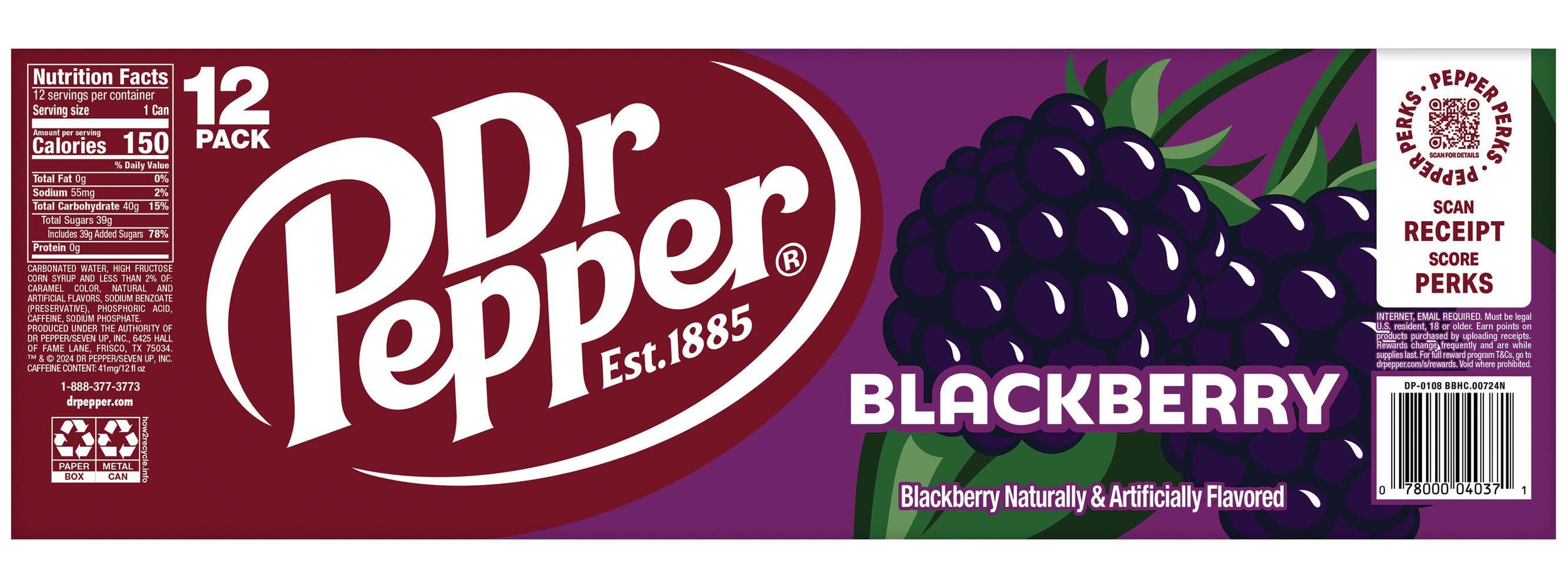 Dr Pepper Flavored Soda Drinks, Blackberry (12 x 12 fl oz)