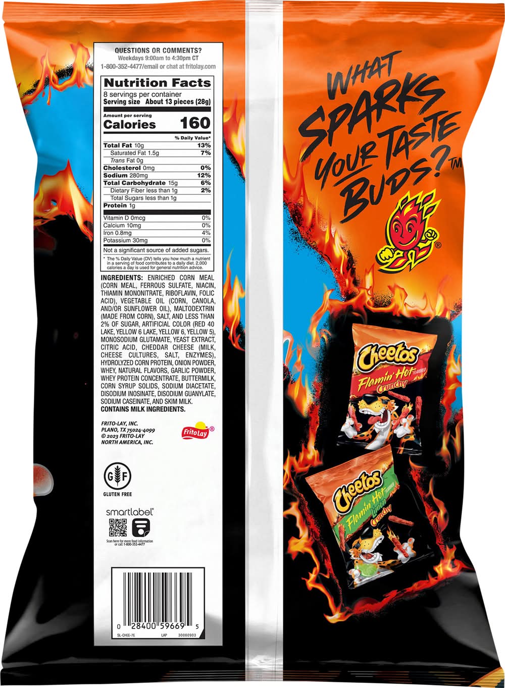 It bold with a spicy kick. Each is seasoned to deliver a sizzling flavor experience. Made with real cheese, these offer a satisfying crunch. They are also gluten-free, catering to those with specific dietary needs. • Flavor: Flamin' hot-cheese • Frito Lay, Plano, TX ,75024