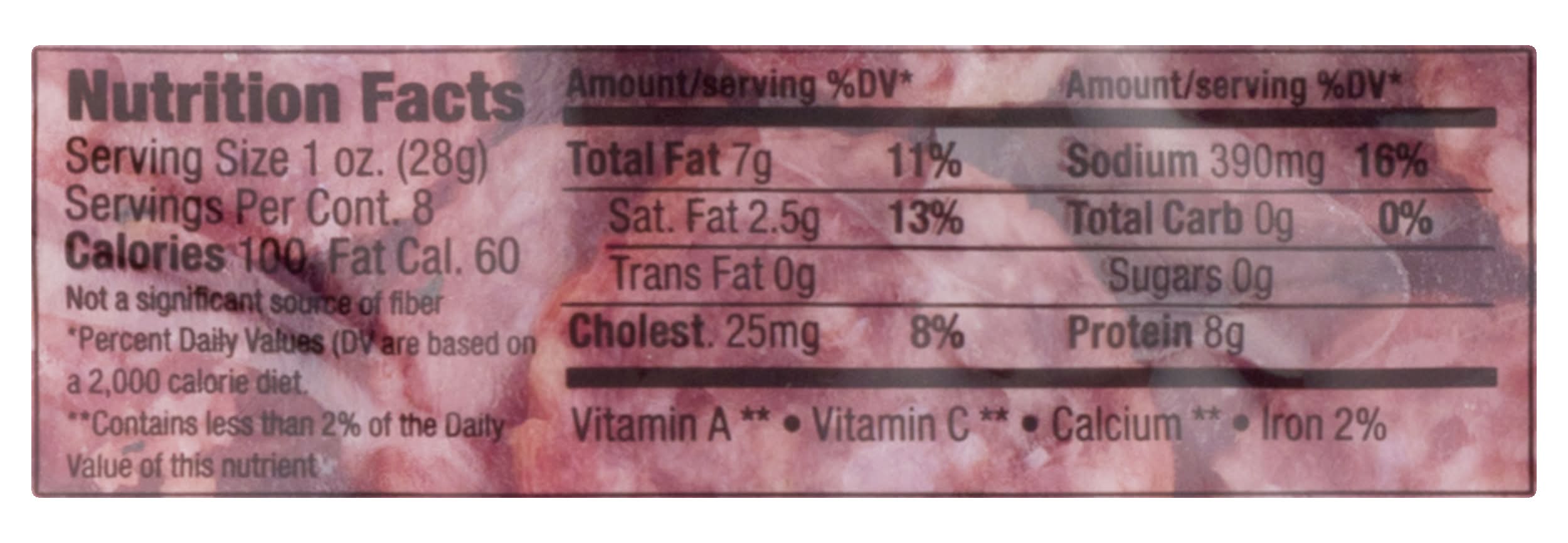 Ingredients: Pork, Salt, and Less than 2% of the Following: Dextrose, Wine, Natural Flavorings, Sodium Erythorbate, Sodium Nitrite, Lactic Acid Starter Culture