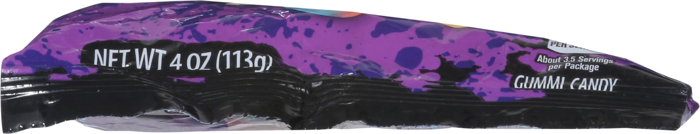 110 calories per serving. Crispy shell. Gummi center. About 3.5 servings per package. Brain scrambling, sweetly sour, chewy wackiness.