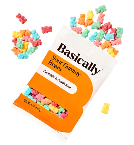 Sour Gummy Bears offer a sweet and sour taste experience in a chewy candy form. Each package contains 5 ounces of gummy bears, ideal for snacking or as a playful dessert topping. Please note that these gummies may contain egg, milk, peanut, sesame, soy, tree nuts, and wheat.